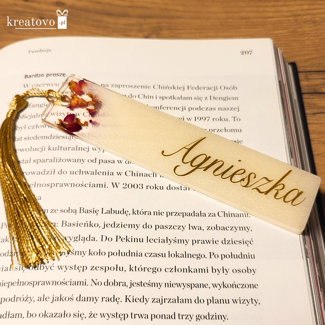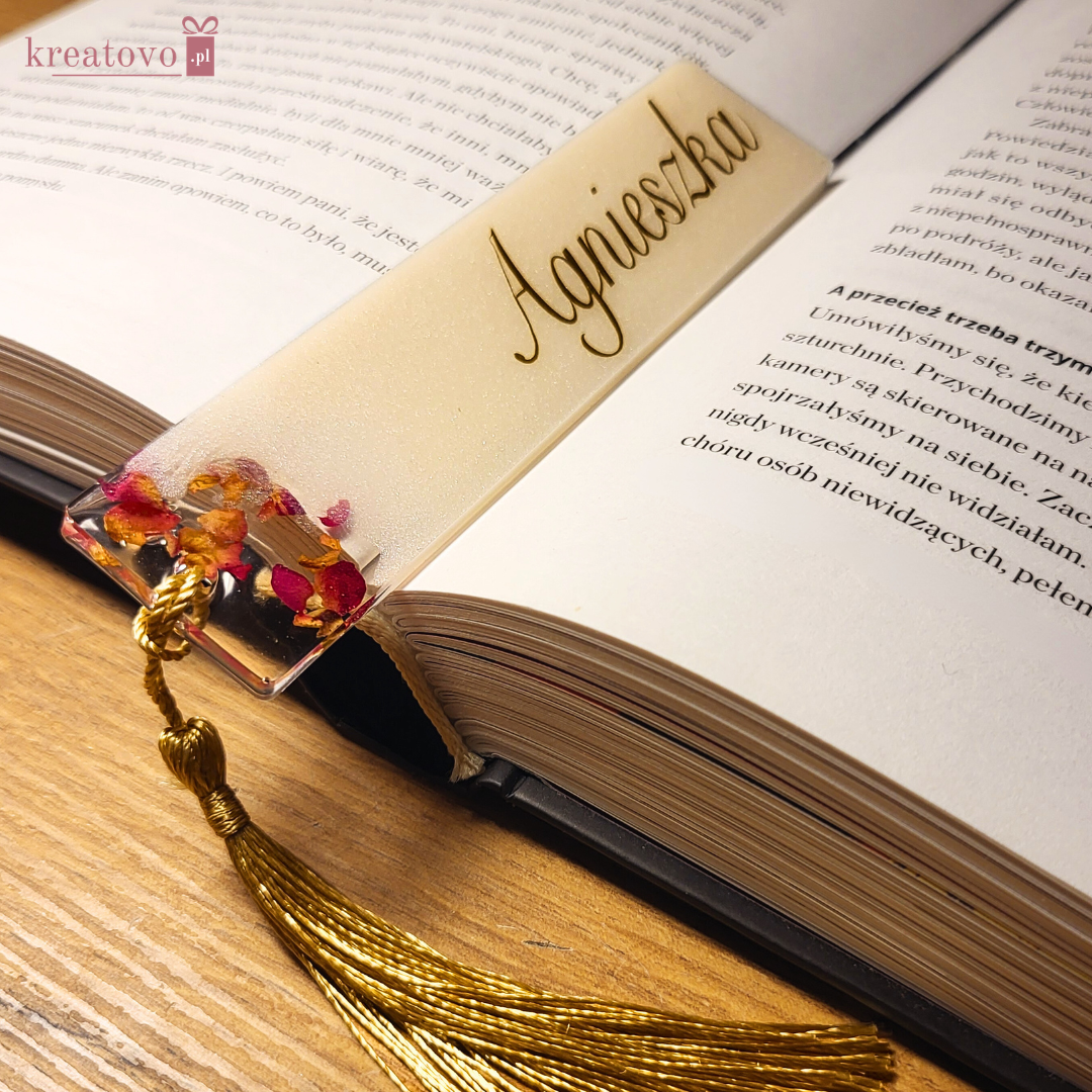 Każda zakładka jest w 100% wykonywana ręcznie w Polsce, dlatego rozmieszczenie płatków róży/złota jest niepowtarzalne. Tworzysz prezent, którego nie da się skopiować.