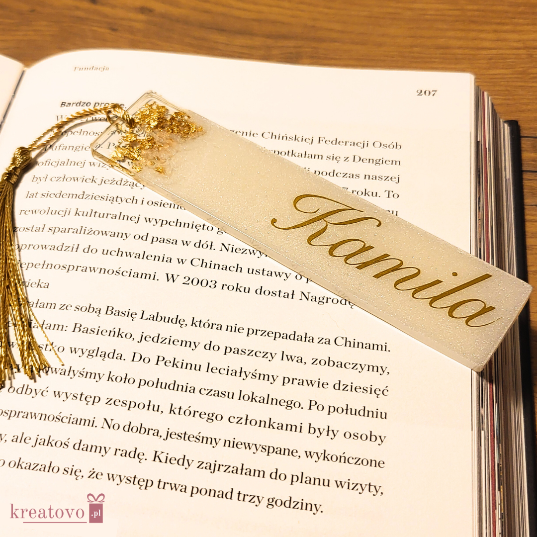 Prześlij imię jakie ma się znaleźć na zakładce na adres e-mail: biuro@kreatovo.pl (w treści maila podaj numer zamówienia oraz imię i nazwisko).