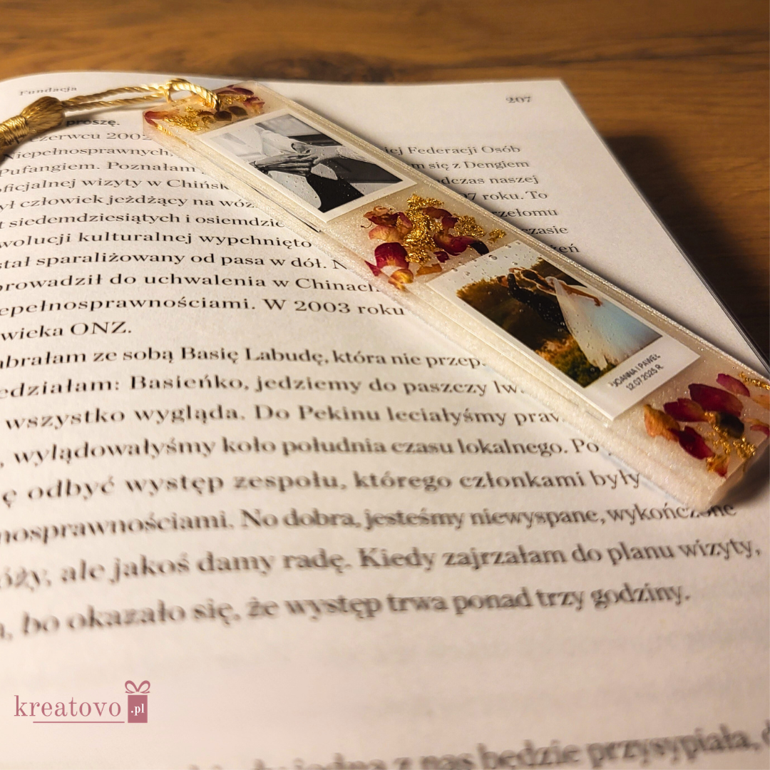 Poznaj nasze wyjątkowe, zakładki do książki wykonane z najwyższej jakości żywicy epoksydowej. To niepowtarzalna dekoracja, którą możesz spersonalizować, dodając dowolne zdjęcia oraz efektowną kompozycję kwiatów. Idealne rozwiązanie na prezent urodzinowy, walentynkowy, dzień kobiet czy na inną wyjątkową okazję – gwarantuje, że Twoje wspomnienia zawsze będą blisko!